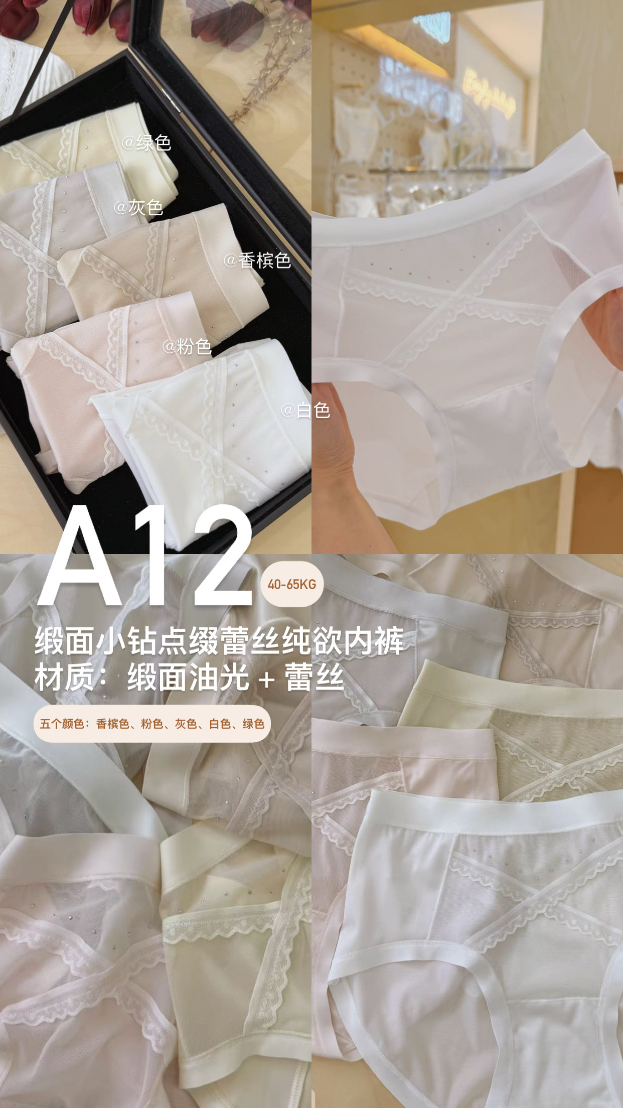 / A12 缎面小钻点缀蕾丝油光纯欲内裤